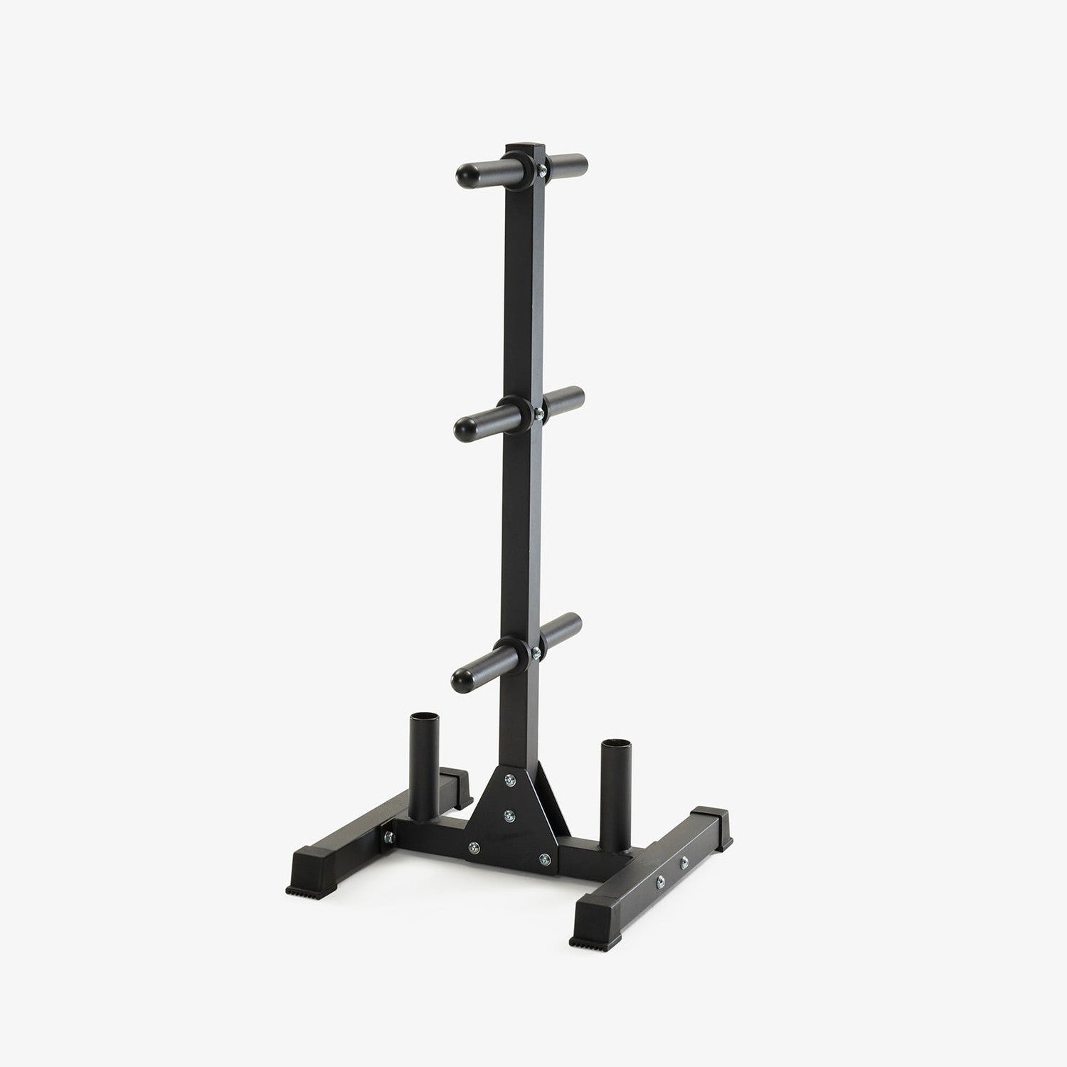 The 3-Level Plate Storage is a versatile, vertical rack designed for organized storage of Olympic weight plates in home or commercial gyms. With three tiers of sturdy horns or pegs, it maximises space by holding multiple sizes of bumper or iron plates securely, often with protective sleeves to prevent damage. Built from heavy-duty steel and supporting high capacities (up to 1,000+ lbs), many models feature wheels for easy mobility, ensuring quick access and a clutter-free workout area.